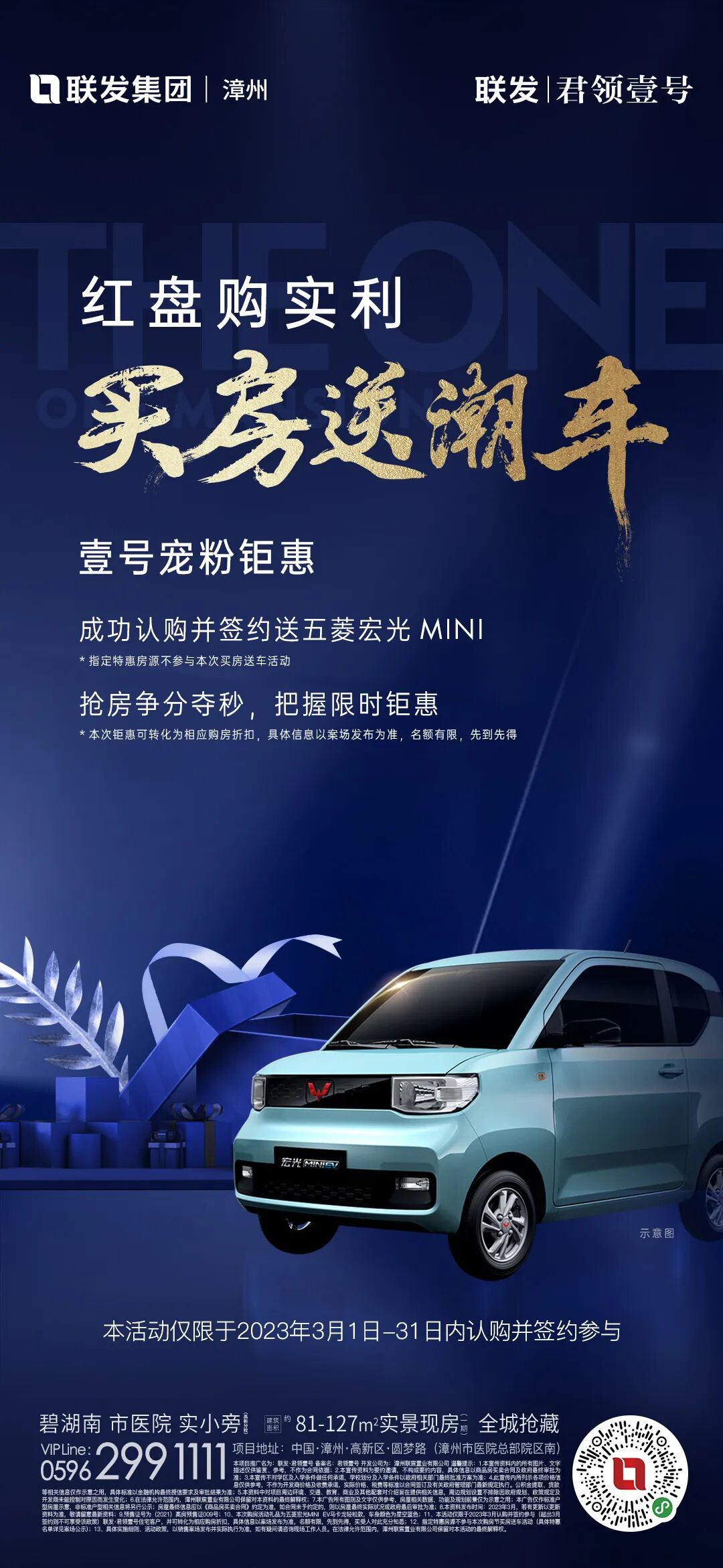 新春伊始,漳州及全国各地楼市回暖的东风频吹,联发•君领壹号紧跟政策红利,多重钜惠助力安家,3月特别推出“红盘购实利,买房送潮车”活动。