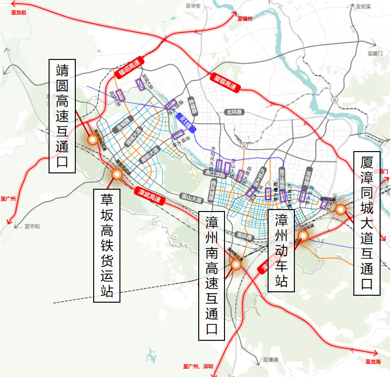 交通配套方面,片区内拥有厦深高铁(在建)、漳汕高铁(规划)、厦漳泉城际轨道R1线(规划)等重大区域交通枢纽设施,龙江南路、圆山大道、圆通大道(南环城路)、南江滨路、厦漳同城大道等通江达海通道已打通,密切衔接厦漳来往客流,城际交通便捷。通过3条跨江通道九龙江大桥、丹州大桥(规划)、马洲大桥,还可以畅达老城区,紧密联系一江两岸。