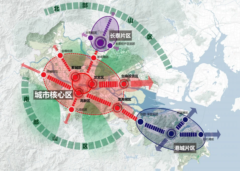 ▲漳州中心城区“一核两翼”格局(图源:漳州高新区)