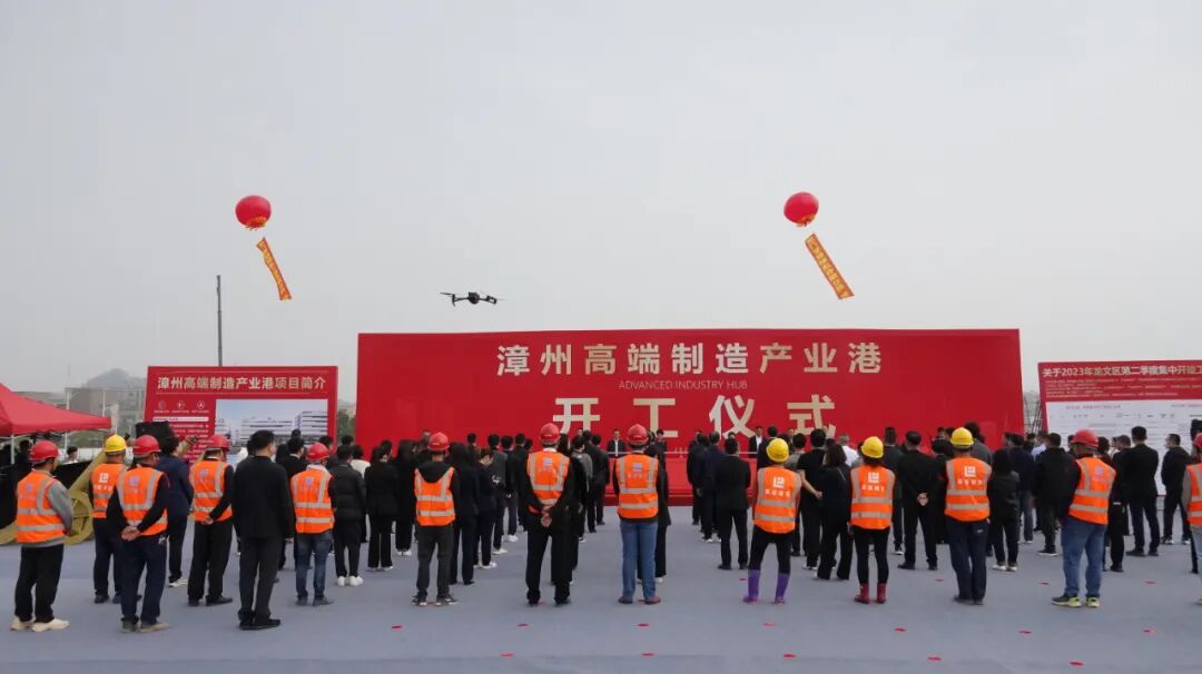 市领导吴文团、曹阳,区领导朱真、林晓强、戴志嵩、李华胜等出席活动,并共同为漳州裕廊高端智能制造业产业港项目开工推杆。