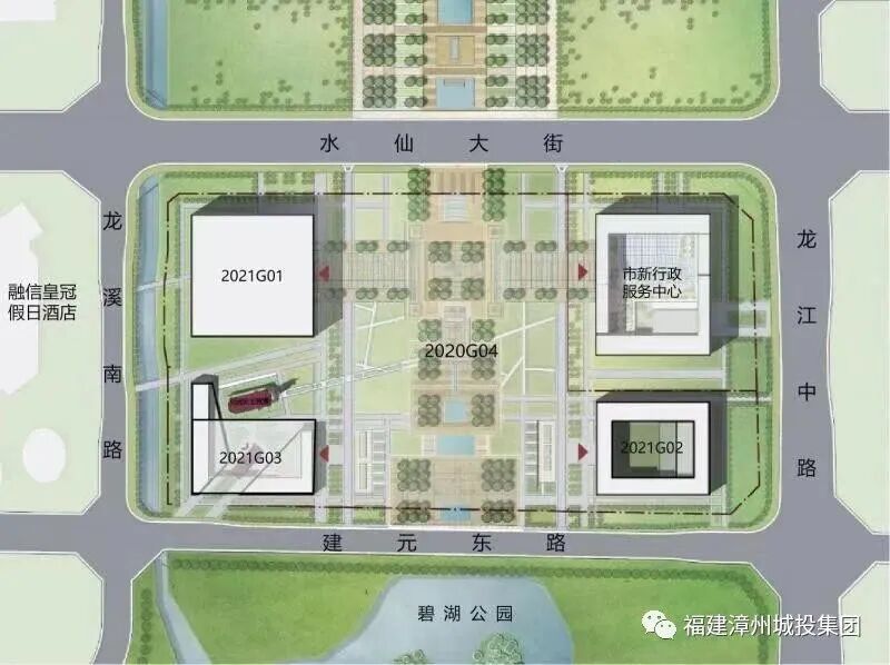 漳州市民广场及商业商务中心是市重点项目,四个地块总用地面积约12.84万㎡(约 192.6亩),总建筑面积约21.45万㎡,总投资估算约15.58亿元。规划以总部经济为主导,联动市行政服务中心,共同打造办公、商业、酒店、文化展览、市民休闲、公共服务六大功能板块,将构建高端商务+政务+市民便捷生活的复合“生态圈”。