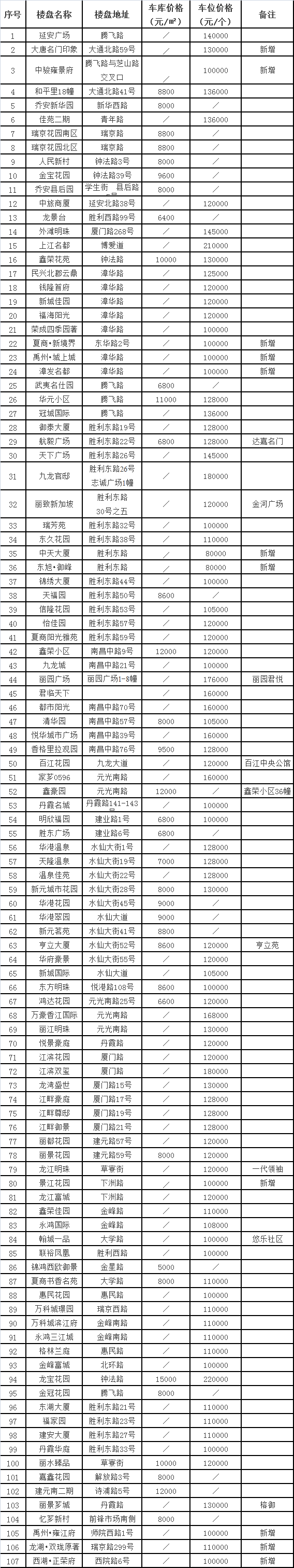 附件2、漳州市芗城区市区车库及车位交易基础价格表