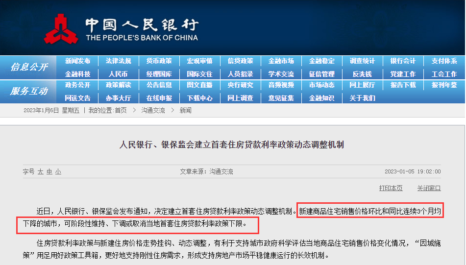 1月5日,央行通过官网、官微,发布《中国人民银行 中国银行保险监督管理委员会关于建立新发放首套住房个人住房贷款利率政策动态调整长效机制的通知》。