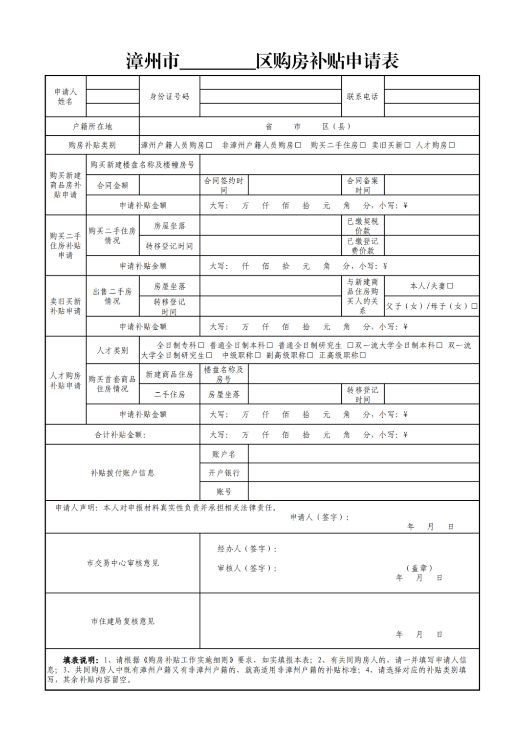 漳州市住房和城乡建设局 漳州市财政局关于印发《购房补贴工作实施细则》的通知